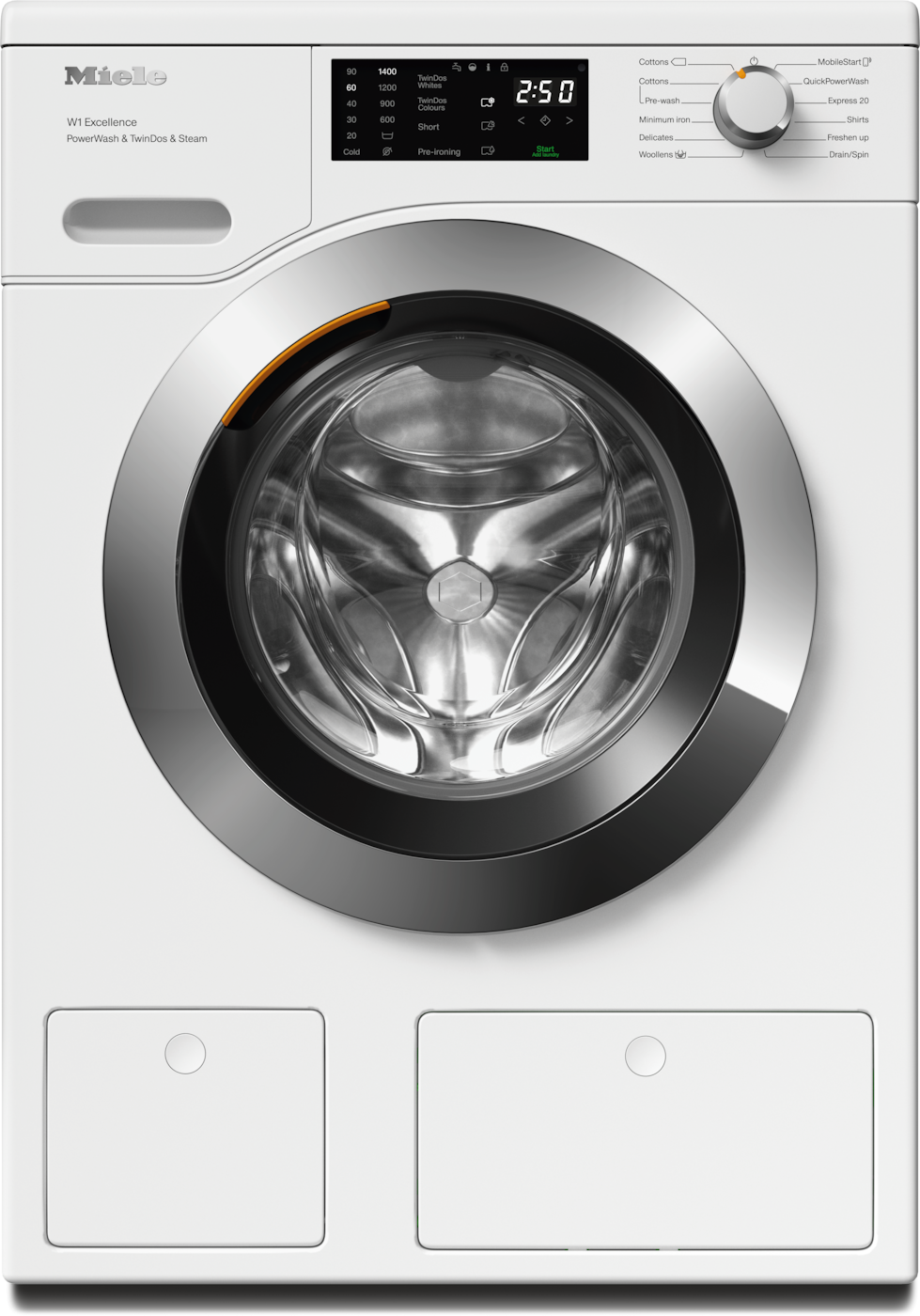 - Tested for 20 years of perfect laundry care*During the development phase of the W1 / W2 washing machine series, Miele tested models and core components in 5000 wash loads (= 5 wash loads per week for 50 weeks per year) in various programmes. More: miele.com/20years